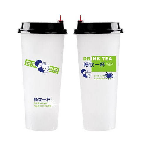Tazza di plastica per frullato di tè al latte boba trasparente usa e getta stampata personalizzata con coperchi